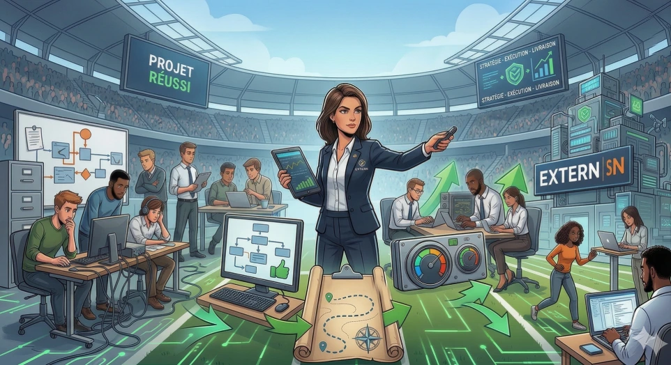 Pourquoi vos projets IT dérapent-ils ? Découvrez comment la chefferie de projet (cadrage, pilotage, conduite du changement) sécurise vos projets et crée de la valeur avec Extern SN.